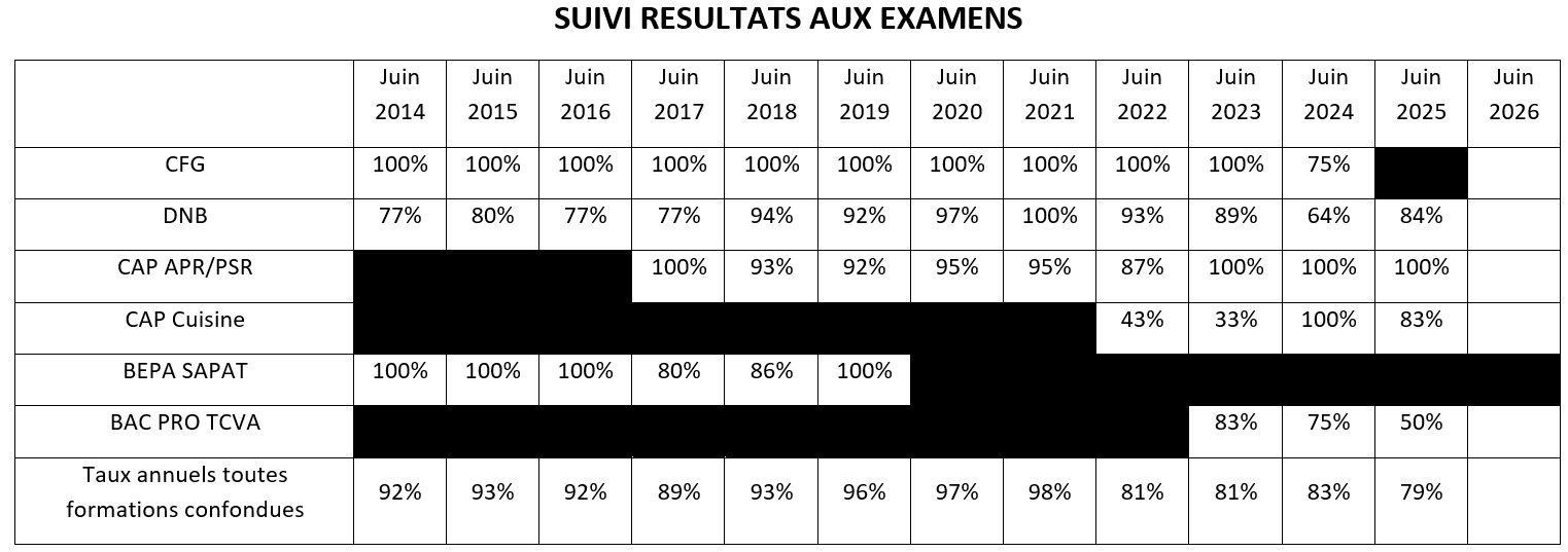 * Ouverture du Bac Pro TCVA en Septembre 2020. Aucun résultat à publier, première session examens en Juin 2023